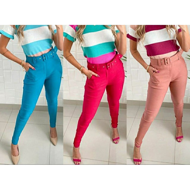 Calcas Com Cinto Bacellarshop Moda Feminina